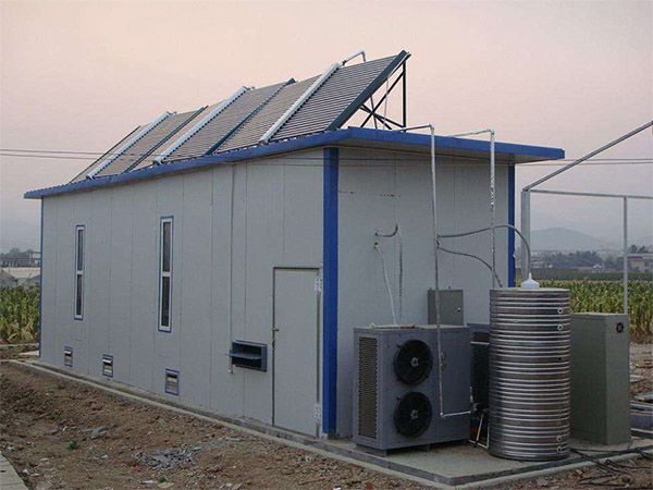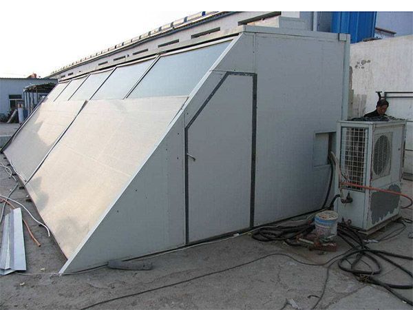 熱泵助推式太陽能烤房主要由太陽能空氣集熱器、空氣源高溫?zé)岜谩⒅悄芑痉肯到y(tǒng)三部分組成。通過太陽能空氣集熱器對(duì)空氣進(jìn)行加熱,利用循環(huán)風(fēng)機(jī)通過管道將高溫空氣傳輸?shù)娇痉吭诳痉績(jī)?nèi)通過太陽能空氣集熱器對(duì) 空氣進(jìn)行加熱,利用循環(huán)風(fēng)機(jī)經(jīng)過管道將高溫空氣傳輸?shù)娇痉績(jī)?nèi);通過溫、濕度感應(yīng)器檢測(cè),根據(jù)所測(cè)溫、濕度和干燥工藝,由智能化控制器控制空氣源熱泵的啟、停,排濕門的開、閉、實(shí)現(xiàn)全自動(dòng)干燥。